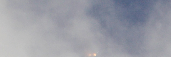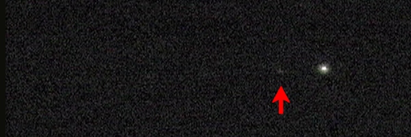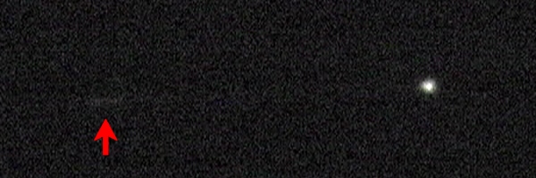 These three video images show the beginnings of the breakup of Space Shuttle Columbia. The bright object on the right is Columbia. In the top image, a piece of RCC (Reinforced Carbon Carbon) wing broke off, spurting a shower of small fragments that quickly burned up in the atmosphere. In the next images, the RCC piece itself (perhaps only a few inches across) can be seen drifting away from Columbia. In both cases, the extreme speeds of reentry caused even small fragments to burn extremely hot and bright.