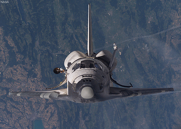 Astronaut John Phillips and cosmonaut Sergei Krikalev on board the space station also gave the shuttle a good looking over.