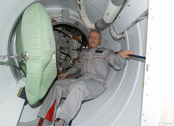 John Phillips prepares to welcome the Discovery astronauts aboard the station.