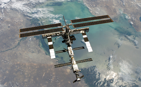 The International Space Station, 205 tons of the most advanced hardware that nations (United States, Russia, Canada, Japan, members of the European Space Agency, and Brazil) can build.